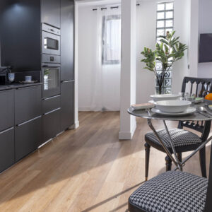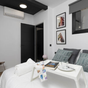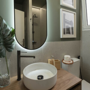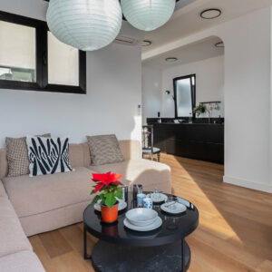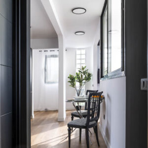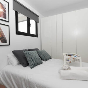 El diseño interior de este proyecto se centra en el aprovechamiento de cada espacio, haciendo una vivienda funcional y creando una circulación entre estancias, fluida, diáfana y cómoda. Cuenta con 46m2 interiores y 30m2 de terraza, pero al tener espacios conectados ampliamente entre sí, la sensación es de tener más m2 de los que realmente tiene.