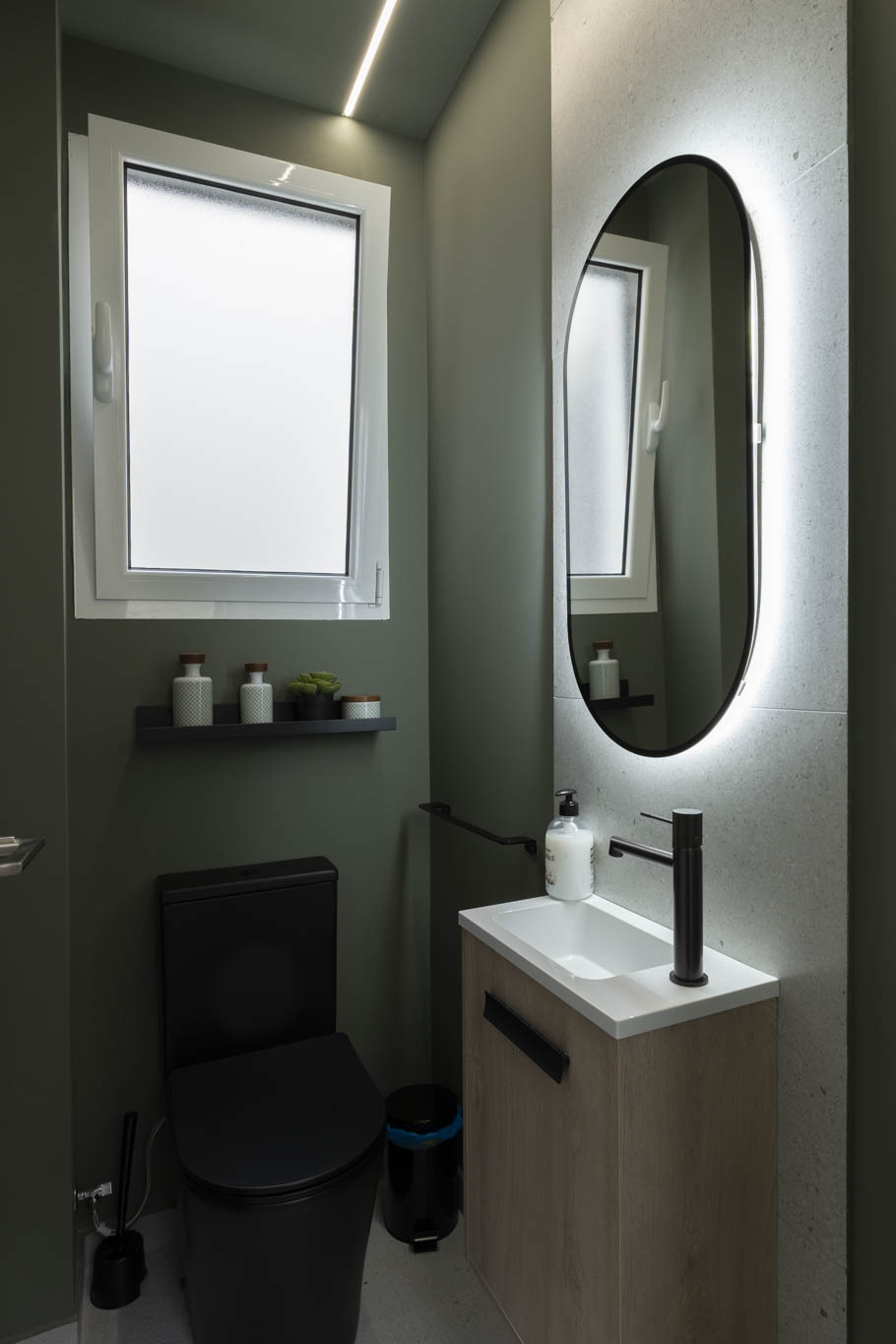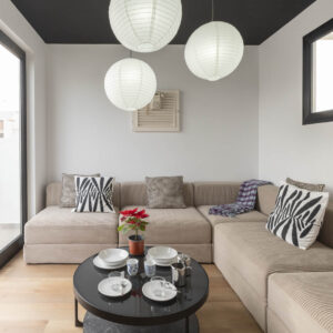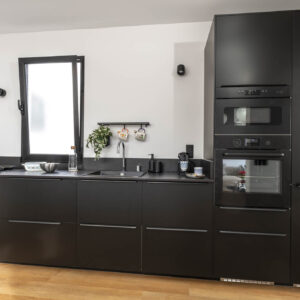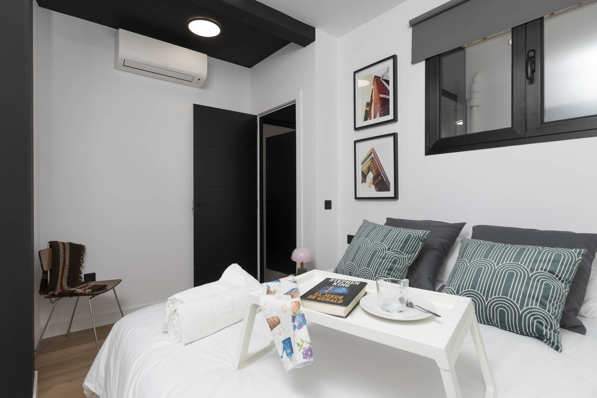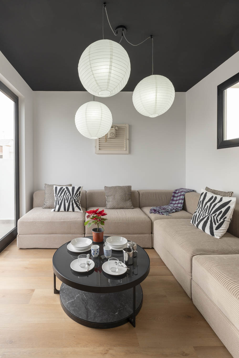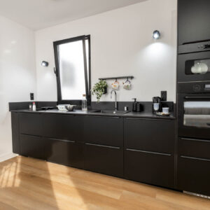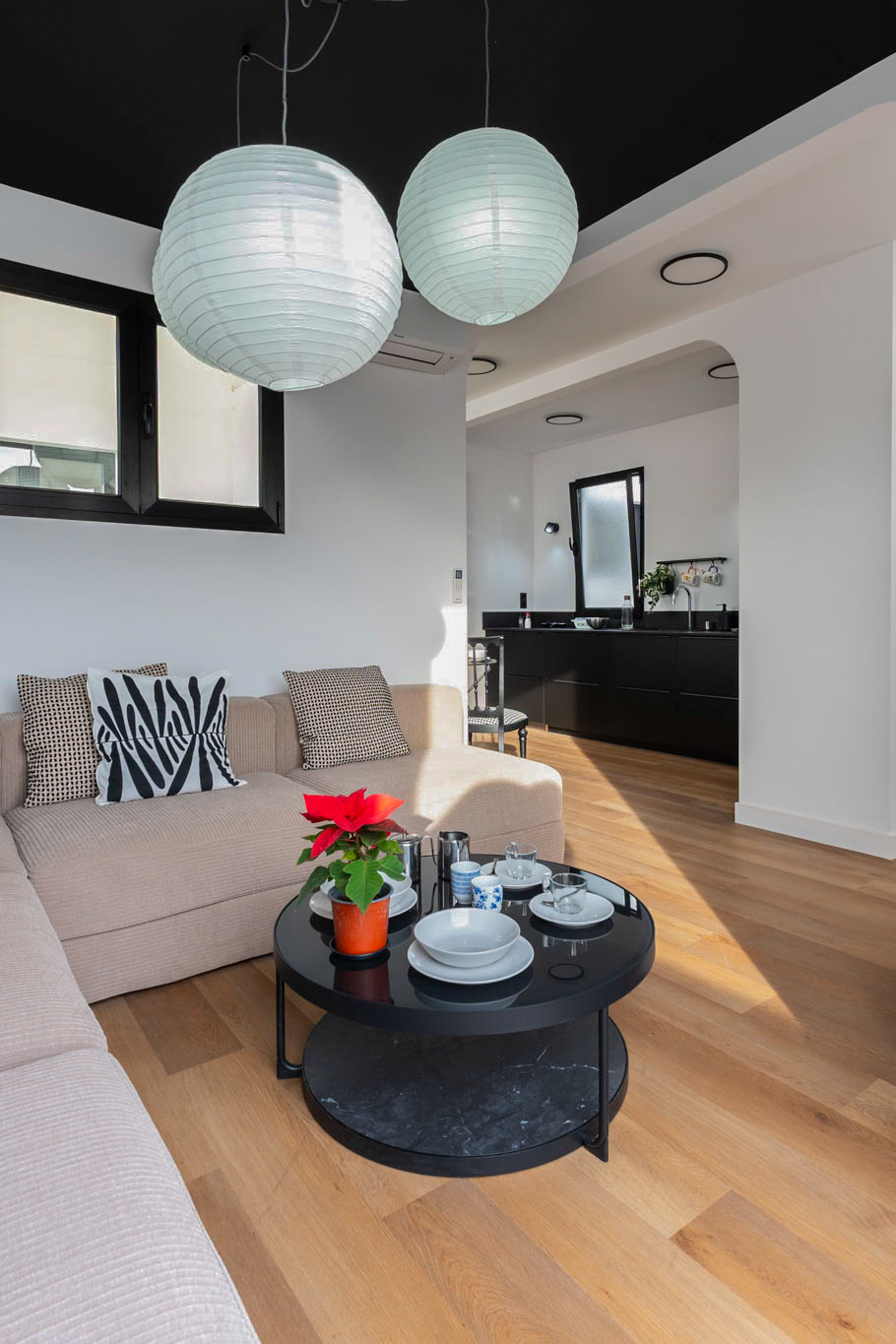La decoración es una mezcla entre minimalista y contemporánea, además, teniendo como referencia el color negro, el cual les gustaba a los propietario. Conseguimos ubicar el negro zonas donde aportara carácter pero sin restar luminosidad.